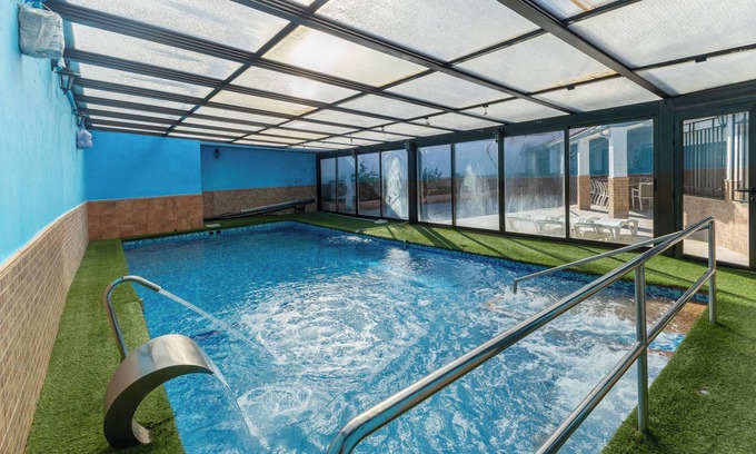 Located in Mascaraque, the Country House Casa Rural Kalfonso has everything you need for a comfortable holiday. The 240 m² property consists of a living room with a sofa bed for 2 people, 7 bedrooms and 5 bathrooms and can therefore accommodate 20 people. Additional amenities include high-speed Wi-Fi (suitable for video calls), a TV, air conditioning as well as a washing machine. 3 baby cots are also available. This rental offers a private outdoor space with a garden and a barbecue, as well as a private indoor pool for your relaxation.