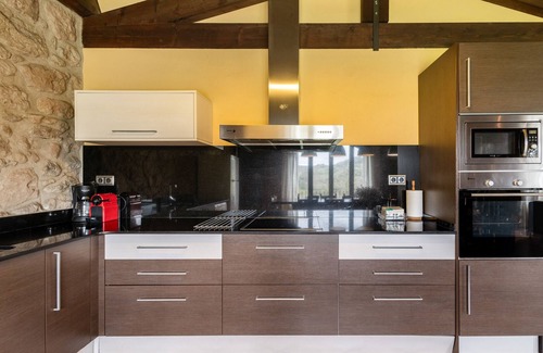 On the garden floor the house has a large living-dining room-kitchen, the latter with the necessary appliances and utensils (ceramic hob, fridge, freezer, oven, microwave, toaster, coffee maker ...). Also in its interior, the rural house Casamira offers to its clients a games room with table soccer and indoor heated swimming pool (water temperature from 28 to 29ºC) with access from the living-dining room-kitchen, as well as a second living room located in the old cellar with another TV and sofas to be able to recreate with reading, resting or with long gatherings with the group.