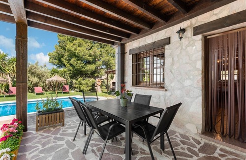 This vacation rental features a private pool, garden, 2 covered terraces, and a barbecue. Perfect for outdoor enjoyment.