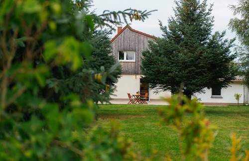 We warmly welcome you, on the Nature Idyll "Landhaus Kranichgrund". In the middle of the bird sanctuary Vorpommern-Rügen and on the edge of the national park Vorpommersche Boddenlandschaft lies the village Lüdershagen. From here you can easily reach the Hanseatic cities and sights of the southern Baltic Sea. A trip to the white & wide beaches of Fischland Darß is just a stone's throw away. Visit the Bird Park Marlow or the Ozeaneum Stralsund. The holiday property is located at the end of a cul-de-sac on the outskirts, surrounded by fields: the Kranichrastplätzen. In addition to the main house, there are several outbuildings, so the yard is divided so that you are undisturbed as our guests. In addition to separate access roads, there is a separate entrance to the apartment, yard, meadow, garden and shed. Everything in the style of the country house generously dimensioned. The area is ideal for cycling, walking, hiking, jogging. In the immediate vicinity you can observe sheep, chickens, horses and cranes: pure nature.