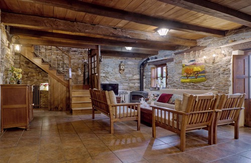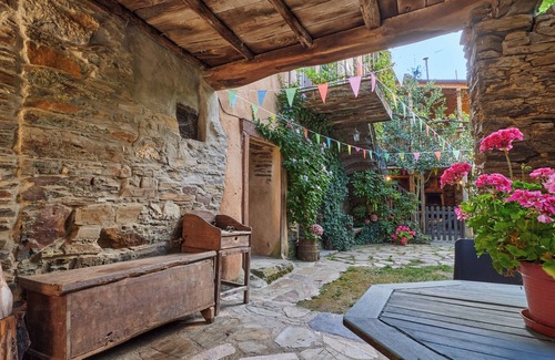 The Country House El Pajariel I is located in Valdecañada and impresses guests with its view of the mountain. The 2-storey property consists of a living room, a kitchen, 5 bedrooms and 2 bathrooms and can therefore accommodate 8 people. Additional amenities include high-speed Wi-Fi (suitable for video calls) with a dedicated workspace for home office, a smart TV with streaming services, a washing machine as well as children's books and toys. A baby cot and a high chair are also available. This accommodation does not offer: air conditioning. This vacation rental features a private outdoor space with a garden, open terrace, covered terrace, 3 balconies, barbecue, and playground.