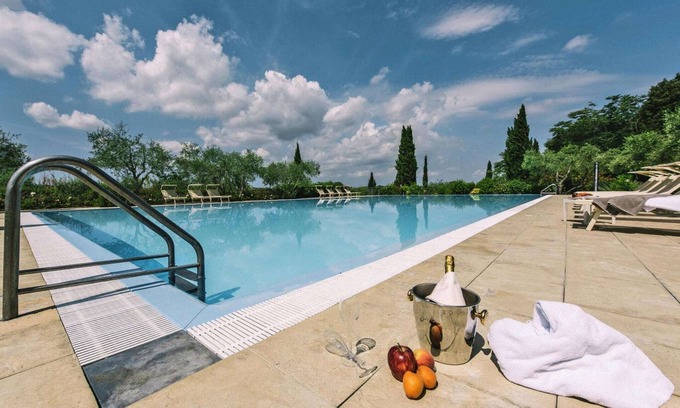 Tranquil 18th century country house situated on the rolling hills between Pisa and Florence. This ancient farm is surrounded by a 5-hectare park with olive groves and woods. Ideal for a quiet and relaxed vacation, for families as well as for couples. The beautiful pool area, the tennis court and the restaurant with homemade products complete the offer. Good starting point to explore cultural cities such as Florence, Pisa, Volterra, Siena and San Gimignano. The many trekking and cycling routes offer you the opportunity to explore beautiful Tuscany yourself, and you also have the opportunity to take part in a tasting. Those who would like to get to know Tuscany better from a culinary point of view can book a cooking course in the complex (on request, for a fee).Offered at your holiday complex: 2 buildings, 19 residential units, reception, breakfast room, restaurant, bar, garden, community terrace, car parking spaces Fee: roll service, washing machine. Activities: Community outdoor pool, 312 square meters (open from early May to late September, depending on the weather), outdoor shower, loungers. table tennis. For a fee: bike rental, tennis. Mobility : Not suitable for people with restricted mobility