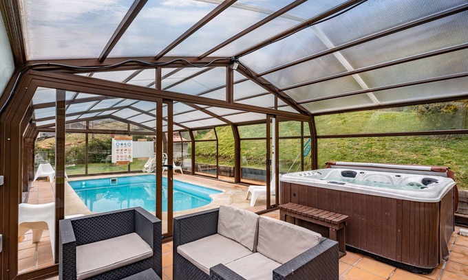 The Country House La Cerra with step-free access is located in Lena and boasts direct access to the ski slopes. The 200 m² property consists of a living room, a kitchen, 6 bedrooms and 3 bathrooms and can therefore accommodate 12 people. Additional amenities include high-speed Wi-Fi (suitable for video calls), a smart TV with streaming services as well as a washing machine. A baby cot is also available. This accommodation does not offer: air conditioning and towels. The Country House features a private outdoor area with a fenced pool, whirlpool, garden, and barbecue.