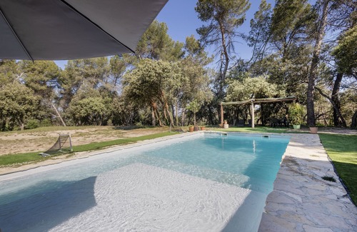 Boasting a beautiful view of the mountain, the Country House Les Hectarees with step-free interior is located in Calders. The 250 m² property consists of a living room, a well-equipped kitchen, 6 bedrooms and 4 bathrooms and can therefore accommodate 12 people. Additional amenities include Wi-Fi with a dedicated workspace for home office, a smart TV with streaming services, a washing machine, beach/pool towels as well as children's books and toys. A baby cot and a high chair are also available. This accommodation does not offer: air conditioning. This vacation rental features a private outdoor area with a pool, garden, children's pool, covered terrace, barbecue, playground, and outdoor shower. Ideal for families and groups looking to relax and enjoy quality time together.
