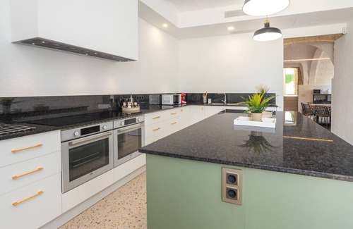 The country house Mas Homs, with step-free access both outside and inside, is the ideal accommodation for a stress-free holiday with your loved ones. The property is spread over 2 floors and consists of a living room, a well-equipped kitchen, 7 bedrooms and 8 bathrooms, and can accommodate up to 20 people. Additional amenities include high-speed Wi-Fi (suitable for video calls), smart TV with streaming services, air conditioning, washing machine, and towels for the beach or pool. You will also find a ping-pong table, a pool table, 2 cots and 2 high chairs. The private outdoor area features a pool, garden, terrace, barbecue and outdoor shower.