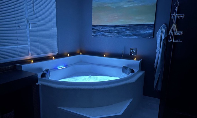 Relax in the spa tub (enjoy the outdoor furniture!) of this vacation home. As for the great indoors, you can try your hand at foosball, or enjoy the free WiFi and cable/satellite TV.