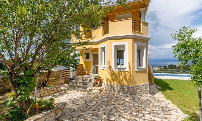The country house Villa Marafen is located in Lefkimmi corfu and is the ideal accommodation for a relaxing getaway. The 110 m² property consists of a living room with a sofa bed for one person, a kitchen, 3 bedrooms and 2 bathrooms and can therefore accommodate 6 people. Additional amenities include Wi-Fi, a TV, air conditioning as well as a washing machine. A baby cot is also available. This vacation rental features a private outdoor area with a pool, covered terrace, and 2 balconies.