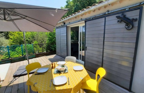 A peaceful villa, ideal for 4 people. You will have at your disposal 2 bedrooms, a private swimming pool (open from May to September) and a terrace without vis-à-vis, with a magnificent view. Its living room with its TV corner and the swimming pool offer the perfect setting to relax after a day spent discovering the Cévennes. A convertible sofa in the living room can accommodate 2 additional people. The accommodation has an equipped kitchen and a bathroom with bathtub and washing machine.