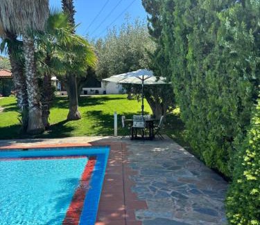 Providing a garden, Country House with Pool and Big Garden provides accommodations in Oropos. Both free Wifi and parking on-site are accessible at the vacation home free of charge. Goulandris Natural History Museum is 20 miles from the vacation home and Neratziotissa Train Station is 23 miles away. Featuring a terrace and pool views, the vacation home includes 2 bedrooms, a living room, satellite flat-screen TV, an equipped kitchenette, and 1 bathroom with a shower. The comfortable, air-conditioned accommodation also comes with soundproofing and a fireplace. The property has an outdoor dining area. Guests at Country House with Pool and Big Garden will be able to enjoy activities in and around Oropos, like hiking. In addition to a seasonal outdoor pool, the accommodation also features kids pool. Terra Vibe Park is 8.6 miles from Country House with Pool and Big Garden, while Lake Marathon is 14 miles from the property. Eleftherios Venizelos Airport is 36 miles away.