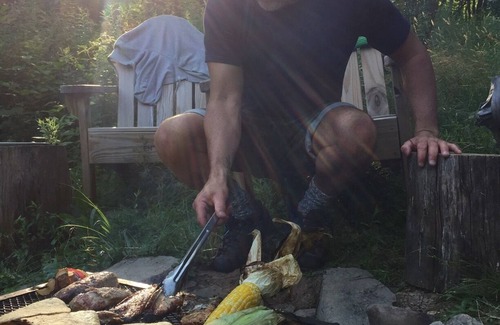 We don’t provide cooking equipment and dishes, but there is a grill on the fire pit.