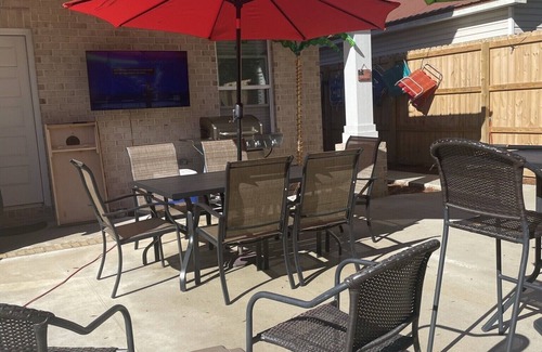 Brand new home! Fully stocked with private backyard that has an outdoor TV, gas BBQ, and plenty of seating. 10 minute drive to Destin or Miramar Beaches. Close to golf courses, fishing, water activities and tons of restaurants and shopping. First floor has an open concept, large kitchen island, and dining table for 8. Second floor has the Master Suite with comfy King bed, huge walk in closet and bath with separate shower and tub. 2 Queen beds, and bunk room with 2 sets of bunk beds. Laundry room is located on upper level as well. We have beach chairs, wagon, cooler for your use as well. the rental does not allow access to the garage but there is driveway parking for 4 cars.
