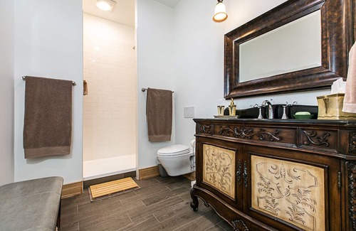 Moon Valley Lodge is a unique and tranquil getaway located in the rolling hills of Jo Daviess County just west of Apple Canyon Lake and only 24 minutes to the historic, tourist destination of Galena. This 3 bed, 3 bath guest house is decorated in what we call rustic farmhouse. Lots of wood for trim and to make several pieces of furniture and furnishings are farmhouse style with rustic accents.