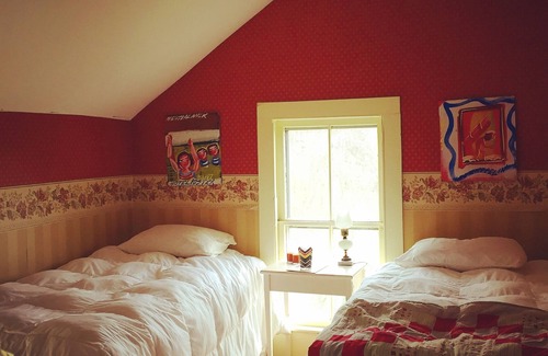 We also offer a lovely guesthouse just a few yards from the main house for an additional cost. Recently fully renovated, it contains two queen beds, Internet, a full bath, and a kitchenette. The guesthouse is decorated by Neil, who is an artist and takes great care to provide an interesting and fun decor for guests. We rent the guesthouse only with the rental of the property. Please contact us for rental costs.
