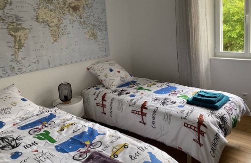 As you settle into this 4-bedroom, 2-bathroom rental, you'll find a sofa bed and a BBQ grill. Try your hand at table tennis, or enjoy the WiFi and TV. Bathroom amenities include a hair dryer, towels, and toilet paper. The kitchen is equipped with an oven, a stovetop, and a refrigerator, as well as a coffee maker, an electric kettle, and an ice maker. And you can even travel light because you'll have a washing machine. Other amenities include bed sheets and heating.