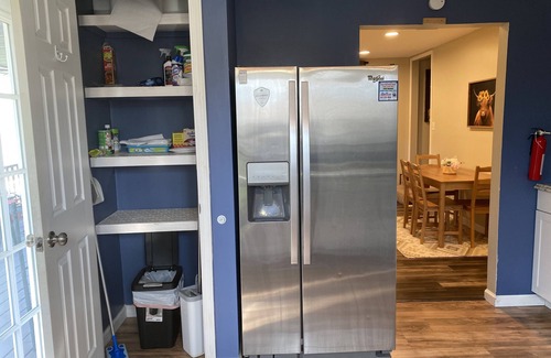 • There is a cozy living area and simple kitchen with electric stove, oven, and pantry. There is lots of cabinet and drawer space if you are a longer stay friend and. Plan to use the kitchen frequently.