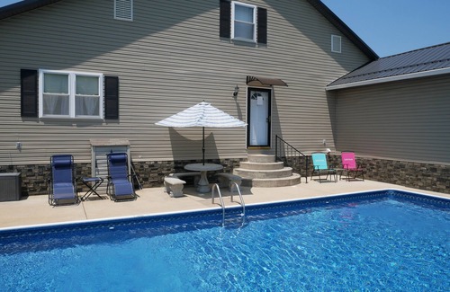 A true country experience , leave your stress behind, relax w/ family & friends at this charming, delightfully peaceful & spacious country home; 34 acres of private nature retreat. Along w/ the large inground pool, new jet hot tub, firepit, game & workout room to enjoy, our Wildlife-viewing deck is also a great area to unwind & admire the heavenly sight of abundant birds and wildlife. A stunningly pleasing nature view in every direction--perfect for stargazing at night w/ no light pollution.