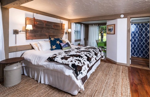 The house includes four bedrooms to sleep 8 guests, multiple spaces to set up a home office and 10 acres of very private yard and fields to enjoy the outdoors.