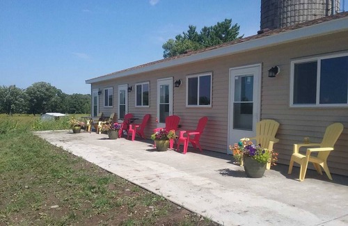 Weekly/Monthly big discounts. Separate entrance room on your patio. Queen and XL twin bed. Walk in tile shower bathroom. On a rural retreat of serenity located on open rolling hills. There is plenty of room on my land and large yard for each of the 4 rooms to have privacy outside. I’m 9 miles from Mora or 18 miles from Hinckley, just over an hour north of the cities out in the country. There is plenty of room on my land and yard for all 4 rooms to each have privacy in the yard. Mowed walking path.