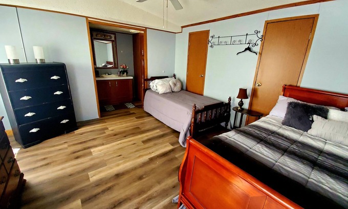 This charming 2 bedroom 2 bathroom home sleeps 6 comfortably. There are air mattress available. This home is located approximately 30 minutes from Beach Bend motor park and 30 minutes from the Corvette Museum in Bowling Green. You can relax on the porch and watch the wildlife , cook on the grill on the back deck. This is a perfect getaway location and is also a great rental for out if state hunters that don't want to stay in a hotel. All the comforts of home located on our little farm