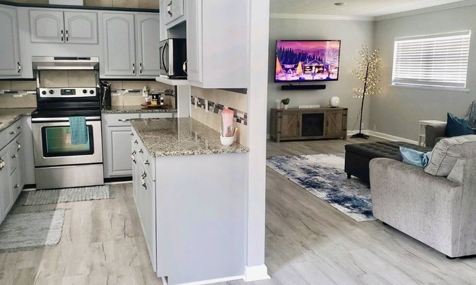 This home features all new living room furniture and beds, bedding, salt-water swimming pool, wifi, smart streaming TV's, rain showers, private parking (covered Pavillion also available for use) and a washer / dryer. Game room includes a twin bed for additional guests.