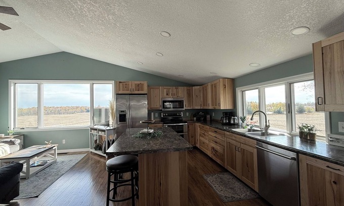 Hideaway in the comfort of an upstairs home with magnificent 360 degree views of nature/farmland.
