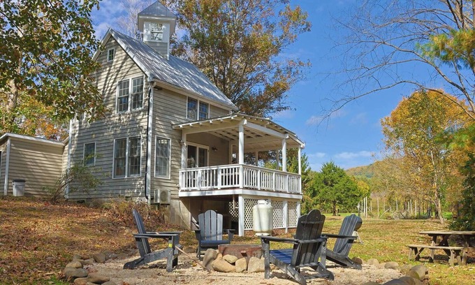 The 2BR/1 BA guest house is located 5 minutes away from the Old Rag Mtn parking lot. it is equipped with all modern amenities surrounded by 10 acres of serene space at the foothills of the Blue Ridge Mountains that include a river, plenty of outdoor seating to read, observe wildlife (including our chickens and bees) and stargaze, plus a fire pit to enjoy s’mores. Don’t forget to check out the amazing show the fireflies put on during summer nights or the breathtaking views of fall foliage!