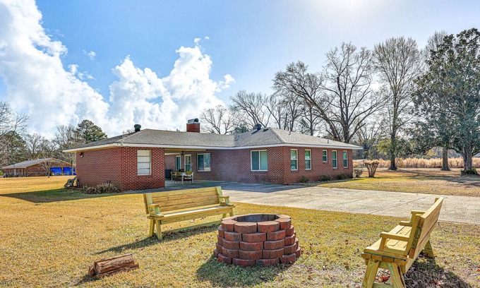Trade in your day-to-day for fresh air and peaceful surroundings at this vacation rental in Marion, LA. The 3-bedroom, 2-bath home is the perfect spot to indulge in quiet countryside living after a day of fishing, horseback riding, and exploring North Louisiana. The Upper Ouachita Wildlife Refuge is just 5 miles away, and Lake D’Arbonne is a quick 24-mile drive from the property! Looking to relax? Sip on your favorite drink in the sunroom, then cozy up by the fire pit for nighttime s’mores.