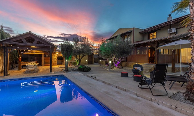 Welcome to this charming villa in Lorquí, a perfect retreat that combines modern comfort with rural charm. This stunning property offers a peaceful and private setting, surrounded by the natural beauty of the Murcia region.The villa has four cozy bedrooms, elegantly designed and equipped to comfortably accommodate up to 10 guests. Each room offers a relaxing atmosphere, with carefully selected details that create a cozy and homely space.The crown jewel of this villa is the private pool, where you can enjoy sunny days with family and friends. Imagine relaxing on a lounger by the pool while enjoying the warm Murcian sun. In addition, the property has a private barbecue, perfect for organizing outdoor dinners and enjoying the gastronomic delights of the region.The rural setting surrounding the property gives you the opportunity to escape the bustle of everyday life and connect with nature. You can take relaxing walks around the area or simply enjoy the serenity of the landscape.Additionally, the villa offers convenient parking for two cars, providing convenience and security for your vehicles.In short, this villa in Lorquí is the ideal destination for those looking for a quiet getaway in a rural setting, with all the modern comforts and space to enjoy the company of friends and family. We hope you enjoy your stay in this special corner of Murcia!To facilitate your arrival, a few days before your arrival you will receive a request to make a security deposit online. This security deposit will not be debited or debited from your bank account. This procedure is authorised by your booking platform.