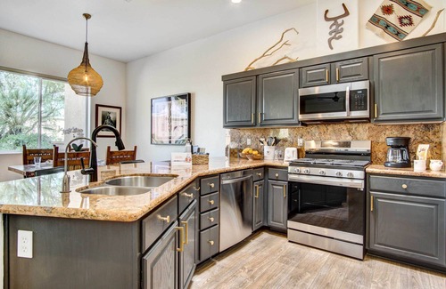 Whether you’re flying south for the winter or seeking a romantic adventure with your honey, this beautiful Oro Valley vacation rental is a great spot for you! The upscale Southwest modern townhome boasts 2 bedrooms, 2 bathrooms, brand new furniture, a cozy patio with a gas grill, and plenty more. An ideal spot for outdoorsy adults and couples, this home is conveniently located a short drive away from Tohono Chul, Saguaro National Park, and date-night options like Mercado San Augustin. Book now!