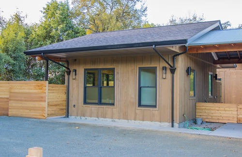 This detached Guest House of 480 sq ft consists of a large bedroom with California King bed, a separate changing area and lovely bathroom. Basically a luxury Hotel room located at the end of a country road with a private yard on a winter creek with vineyard views beyond. Newer construction, completed in Oct. 2016. Being located between Glen Ellen and the town of Sonoma puts you in the heart of the Valley of the Moon (Sonoma Valley) with wonderful restaurants and wineries, Jack London State Park, Historic Sonoma Plaza and much more.