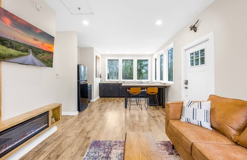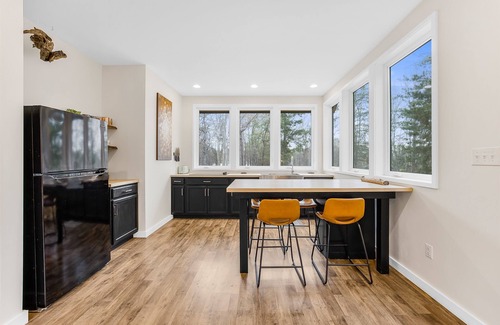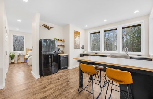 When it's time to recharge, retreat to the comfort of our floating platform king bed, where rest comes easy amidst the peaceful ambiance of the lake or behind the room darkening shades. Wake up refreshed and ready to seize the day, with a fully stocked kitchen and a combo drip coffee/k-cup machine to fuel your adventures.
