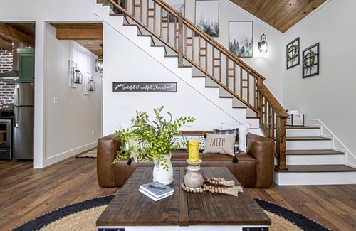 The Barn House Tree Loft at Nature's Loft is a unique and tranquil getaway 4.4 miles from the coolest little town in Arkansas "Gilbert" and the Buffalo River Access. This modern farmhouse inspired Tree Loft is a representation of sophistication, comfort, and beauty. Every detail has been tastefully thought out in order to offer our guests modern comfort and luxury in the woods. Full of amenities that leave you wanting for nothing. Embrace nature's beauty as you relax in the rock like hot tub unique to Nature's Loft.