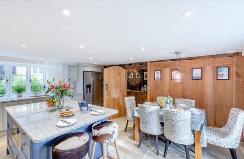 Original panelling in dark, attractive wood, ancient beams and stone-flagged flooring have been lovingly maintained in this 700-year-old cottage. And yet, it’s been thoughtfully renovated and updated to feature so many modern amenities and contemporary-styled features. Make your way inside through the porch, where there’s space to store shoes and coats. Once indoors, you’ll first notice a ground-floor bedroom with a cosy snug and an en-suite shower room, an ideal retreat for two guests seeking a little privacy. Steps lead up to the kitchen, along the hallway, a fantastic space to entertain in, complete with a large extendable dining table and seating for up to 8 guests, as well as a show-stopping central island. There’s also a utility room with additional facilities next door and a downstairs shower room. The lounge is an impressive room with ample comfortable seating and everything you’ll need for a movie night, and you’ll also find a second secret snug on a lower level that’s ideal for those who’d prefer a games night instead of a film or box set. Head up the wooden staircase to the first floor to find the three remaining bedrooms. The largest is a fantastic super-king-size with a four-poster bed and an en-suite bathroom, complete with its very own freestanding bathtub. Equally as appealing, two twin rooms can also be found on this floor, each served by a refreshing and spacious family shower room. As if the interior wasn’t as impressive enough, the property enhanced further by its garden.