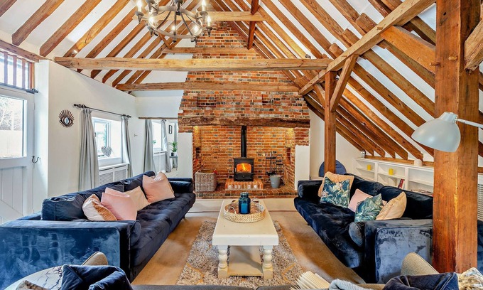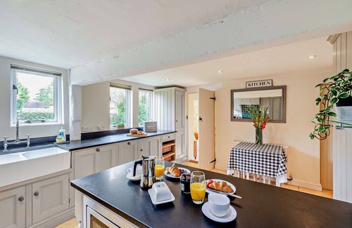 Court Lodge is a substantial and picturesque twin roundel oast house set in pretty gardens within the hamlet of Warbleton. This stylish property is well-proportioned and perfect for sharing with family or groups of friends. It can accommodate up to 11 people with a family bedroom sleeping 3 and a separate ground floor double bedroom with an en-suite shower room across the courtyard in the converted barn. The barn also houses a fabulous games room, perfect for teenagers and adults alike with a full size football table, a Smart TV and PS3 console. In the Oast House, the ground floor is spacious and well furnished, creating a comfortable and relaxing atmosphere with ample rooms for all the family. In the sitting room there is a large inglenook fireplace with wood-burning stove and a magnificent vaulted ceiling which leads through to the dining room. There is also a snug in the roundel, with a Smart T.V, which leads out into the gardens There are a number of outside seating areas to enjoy and children will have fun on the swing set and there is also outdoor table tennis in the open bay garage. The market town of Heathfield is about 5 miles away and has a good range of shops, and the historic town of Battle is about 11 miles with its ruined Abbey and 1066 battlefields. Although surrounded by the glorious Sussex countryside with many footpaths and woodlands to enjoy (you can walk the 1.2 miles across the fields to the Brewers Arms at Vines Cross), the coast isn't too far way. Head off to Historic Rye and the golden sands at Camber or enjoy a day exploring the artistic North Laine area of Brighton. Bateman's, the home of Rudyard Kipling, Groombridge's Enchanted Forest and Drusillas Park are also nearby, making this a very popular holiday destination for all the family to enjoy.