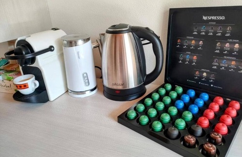 The kitchen is equipped with an oven, a stovetop, and a refrigerator, as well as an electric kettle, a lobster pot, and a microwave. Bathroom amenities include a hair dryer, a bidet, and towels. And there's access to laundry facilities, so you can even pack a bit lighter. Other amenities include a BBQ grill, bed sheets, an ironing board, and heating.