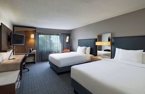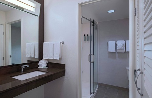 Courtyard by Marriott Austin The Domain Area offers 102 accommodations with safes and coffee/tea makers. Beds feature premium bedding. 55-inch flat-screen televisions come with premium satellite channels. Bathrooms include shower/tub combinations, complimentary toiletries, and hair dryers.