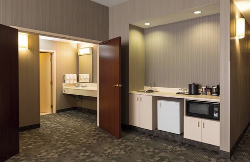 Your stay at the hotel includes access to an array of fantastic amenities designed to enhance your wedding experience. Enjoy a refreshing dip in the indoor pool or relax in the spa tub after a day of festivities. A well-equipped 24-hour fitness center allows you to maintain your routine during your stay. The hotel's restaurant offers delicious dining options, and the bar/lounge provides the perfect setting to unwind with friends and family. Each guest room is thoughtfully appointed with safes, coffee makers, and smart televisions, ensuring comfort for you and your wedding party.