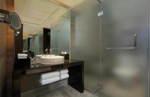 Standing tall in lively Xujiahui, Courtyard By Marriott Shanghai Xujiahui offers luxurious rooms with floor-to-ceiling windows and 32-inch flat-screen TVs. It features a 656 ft² fitness center and roman-style indoor pool. Courtyard By Marriott Shanghai Xujiahui is 1640 feet from Xujiahui (Line 1&11) Subway Station through which you can easily access Shanghai Disneyland. It is 3.1 mi from Shanghai South Railway Station and 8.7 mi from Hongqiao Airport. Enjoy city skyline views from comfortable seating areas. Other in-room comforts at Xujiahui Courtyard include fine linen, ample workspace and marble bathrooms with a bathtub. Refreshing workouts await at the state-of-the-art fitness facilities. Friendly staff at Courtyard by Marriott can provide business, tour and car hire services for guests’ convenience. Offering all-day dining, MoMo Cafe provides hearty buffet spreads featuring international dishes. The Lobby Lounge and MoMo To Go are ideal for light refreshments and gourmet coffees.