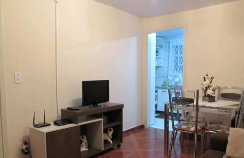Furnished apartment with 2 bedrooms, one with bunk bed and the other with 2 single beds and a tv. It has wifi internet and cable TV in the living room, all kitchen utensils, bed linen, pillow and a covered per person, plus an outdoor parking space. The apartment is located on the main street of the neighborhood with several trades and bus stop close by. It is on the first floor of a block (block 5) of just 4 apartments.