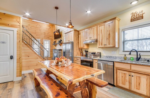 Embark on a peaceful getaway in the foothills of the Ozarks at this 2-bedroom + loft, 2-bath Richland cabin! Whether you're seeking serenity among the trees or planning an outdoorsy retreat with friends, the vacation rental promises the perfect home base. After adventuring along the Gasconade River or taking a day trip to Lake of the Ozarks, kick back on the porch to enjoy good views and even better company.