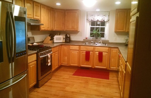 Our place is located in a valley surrounded by the Green Mountain National Forest, Dorset Mountain and Danby Mountain. There are several major ski areas within 30 minutes and Killington ski resort is 45 minutes away. There are many hiking trails and fishing spots minutes away, as well as Emerald Lake which is 5 miles from the place. Our place is an old cow barn converted into a beautiful spacious home. The recreation room has a ping pong table, pool table, dart board, foosball table, poker table, Karaoke machine, and much more available to make for a fun filled stay. The living room has a huge 65" flat screen TV and plenty of room for everyone to relax and enjoy. Four of the bedrooms have a queen size beds, the master bedroom has a king size bed and private bath. The kitchen is fully equipped with everything needed for preparing your meals.