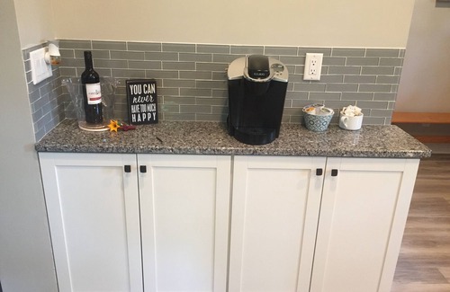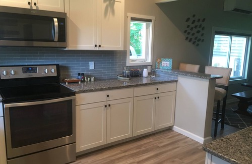 This Cottage sleeps 6 comfortably with 1 queen size bed located in a private bedroom, Queen Murphy bed located in the great room in addition to a loft accessed by ladder to a Queen bed. All the comforts of home can be found here with large walk in ceramic tile shower, full size kitchen with granite counters, full size appliances, dining area for 6-8 people, washer/dryer on site. WIFI and streaming service provided.