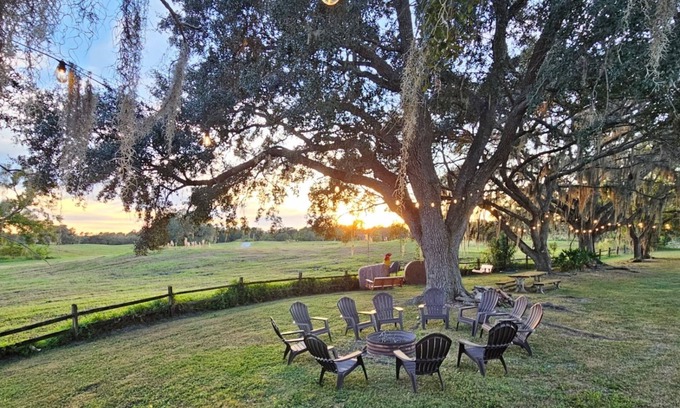 This is a truly magical place for our family and guests. Unwind and let all of your troubles go while you swing in our benches hanging from 200 year old oak trees. Wake up and sip your coffee while gazing out to the vast distance and let your imagination run free.