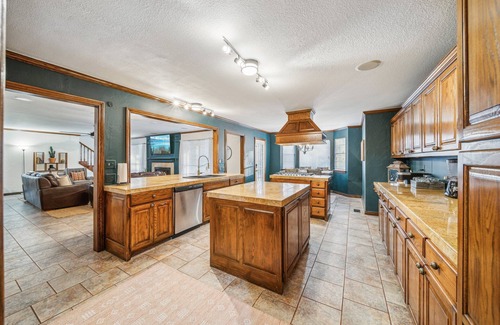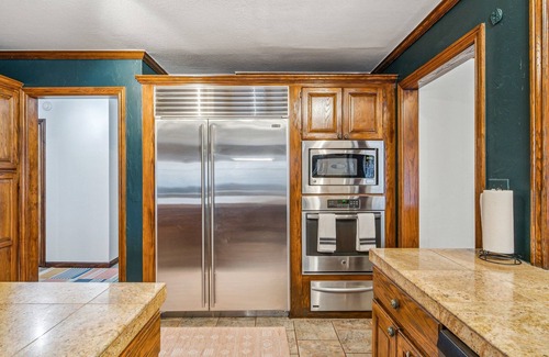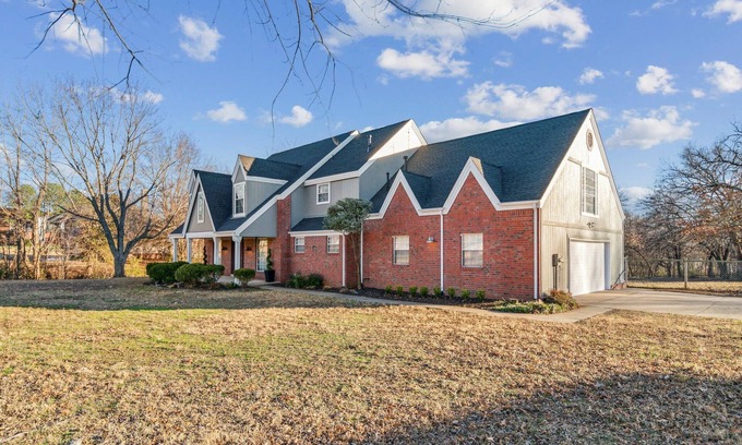 Escape to our spacious 3,600 sqft cowboy-inspired retreat, perfect for families, friends, or groups. Set on over an acre of land, this home offers three king bedrooms, a large bunkroom (sleeps 8), a poker/game room, and a fully equipped kitchen with Sub-Zero fridge, large range, and prep island. Enjoy outdoor fun with a firepit, cornhole, pickleball net, and more. Minutes from Tulsa's top attractions, ideal for exploring or relaxing. No large parties or unapproved guests. Strict no-pet policy.