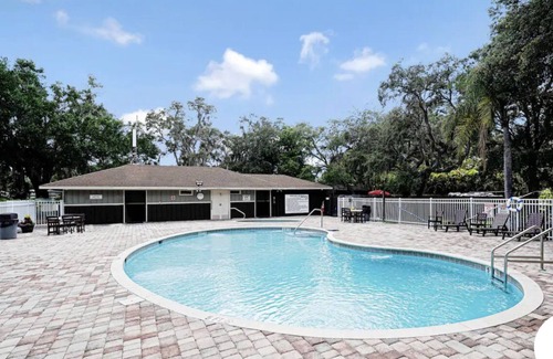Yes, this River Ranch house has a swimming pool. Check the Facility Overview section for details about the pool and other available facilities.