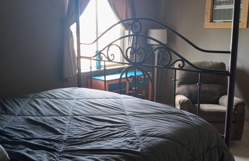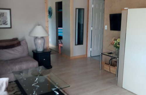 Guests will have a kitchenette (fridge, sink, stove, microwave, and coffee maker), and a cozy living room. Spacious bedroom with a large closet. An enclosed backyard is ready for guests traveling with their furbaby. Nature lovers will enjoy being able to hike, birdwatch, stare at the night sky, and visiting the nearby lake.