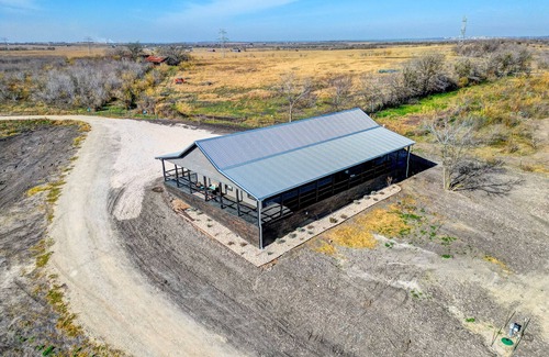 Welcome to the Coyote Creek Ranch , a true Texan paradise where the boots are made for walking and the hats are meant for tipping under wide open skies. Nestled on 50 acres of Martindale's rolling countryside, this working Texas Longhorn Cattle ranch offers you a unique escape from the daily grind. Just 6.5 miles from the vibrant town of San Marcos and 10.5 miles from the legendary Lockhart, you'll discover a location that perfectly balances hill country charm with rustic elegance.