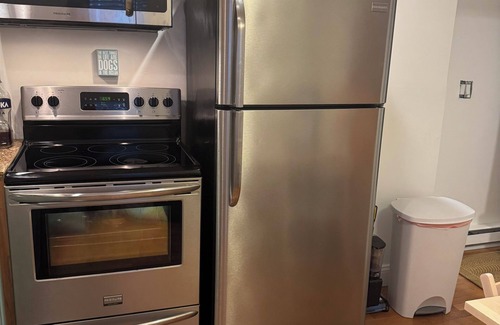 The kitchen is complete with flat top range, new Bosch dishwasher, new pots/pans/silverware/plates/knives/utensils, and new table and chairs. The Wi-Fi repeater ensures you'll have a strong connection throughout the home. The stainless fridge is just a year or two old and easily holds all you'll need to stay full and refreshed during your stay.