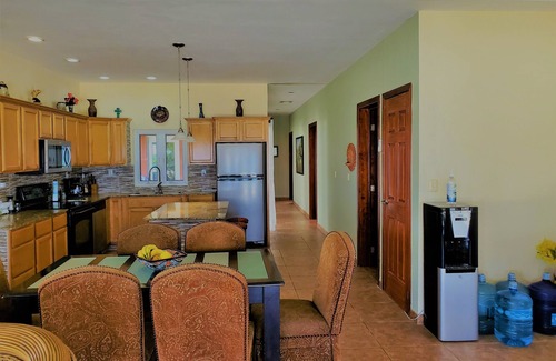 Our fully equipped kitchen has everything needed to feel right at home including coffee & filters, condiments, and seasonings. There's a water cooler with purified chilled bottled water.