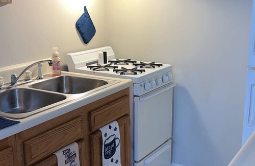 This is an upstairs, one bedroom, one bath apartments on a dead end street with a full size, washer, and dryer fully equipped, kitchen, linens, and towels provided designated free, parking spot and a nice porch to sit outside and relax
